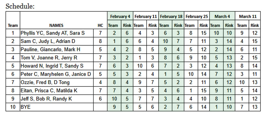 Wednesdays: February 4 – March 11 We gather by 12:30 and play at 1:00 pm.